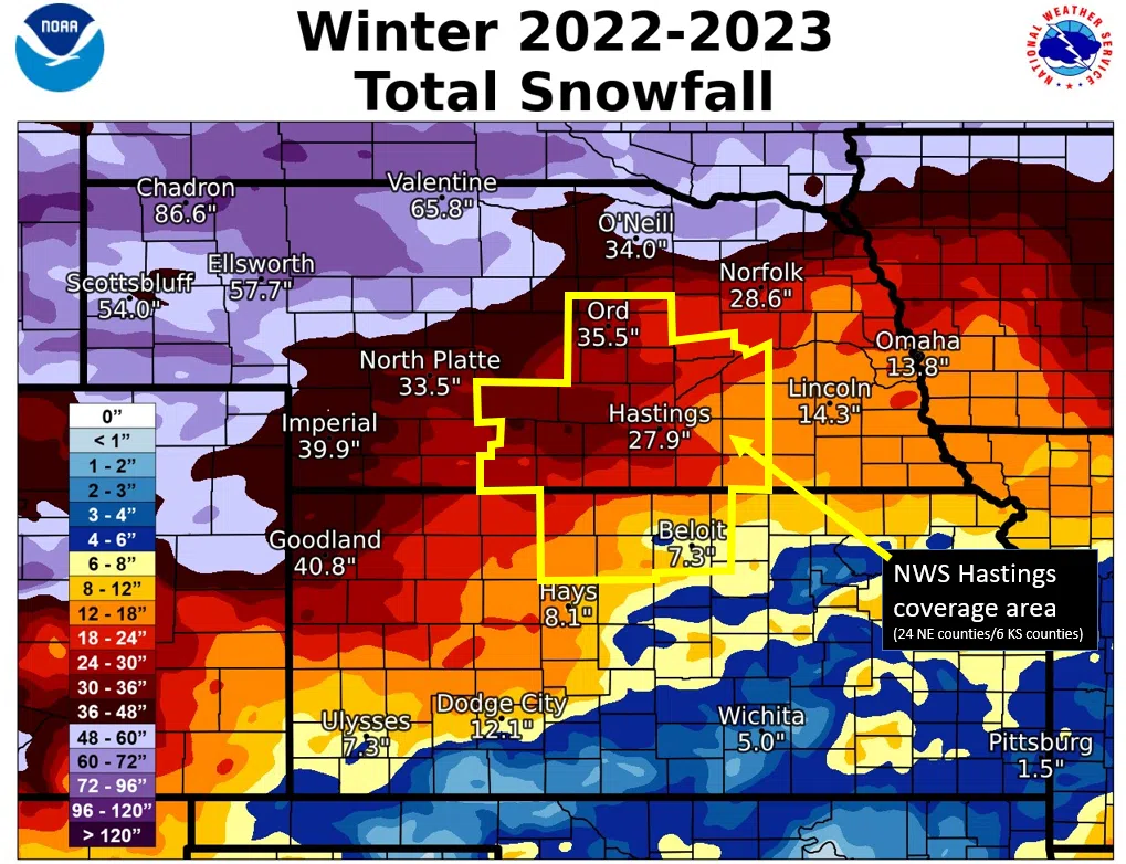 As is often the case, most of the seasonal snow at any given location fell during two to four separate snow events. Here is a rundown of the main snow events of the 2022-23 season provided by NWS Hastings.