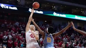 The Huskers opened the game with back-to-back 6-0 runs to take an early 12-2 lead, then pushed the margin to 19-6 at the end of the first quarter. Markowski scored all 11 of her first-half points in the opening quarter, including both of Nebraska’s three-pointers in the period.