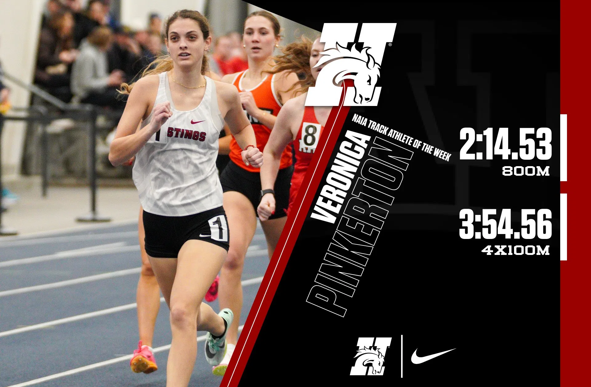 HASTINGS – Veronica Pinkerton of Hastings (Neb.)has been named NAIA Women’s Indoor Track Athlete of the Week, and Arriana Benjamin of Marian (Ind.) has been selected as the NAIA Women’s Indoor Field Athlete of the Week. The duo was selected based on their performances from January 22-28 and were selected out of a pool of nominees from across the country.