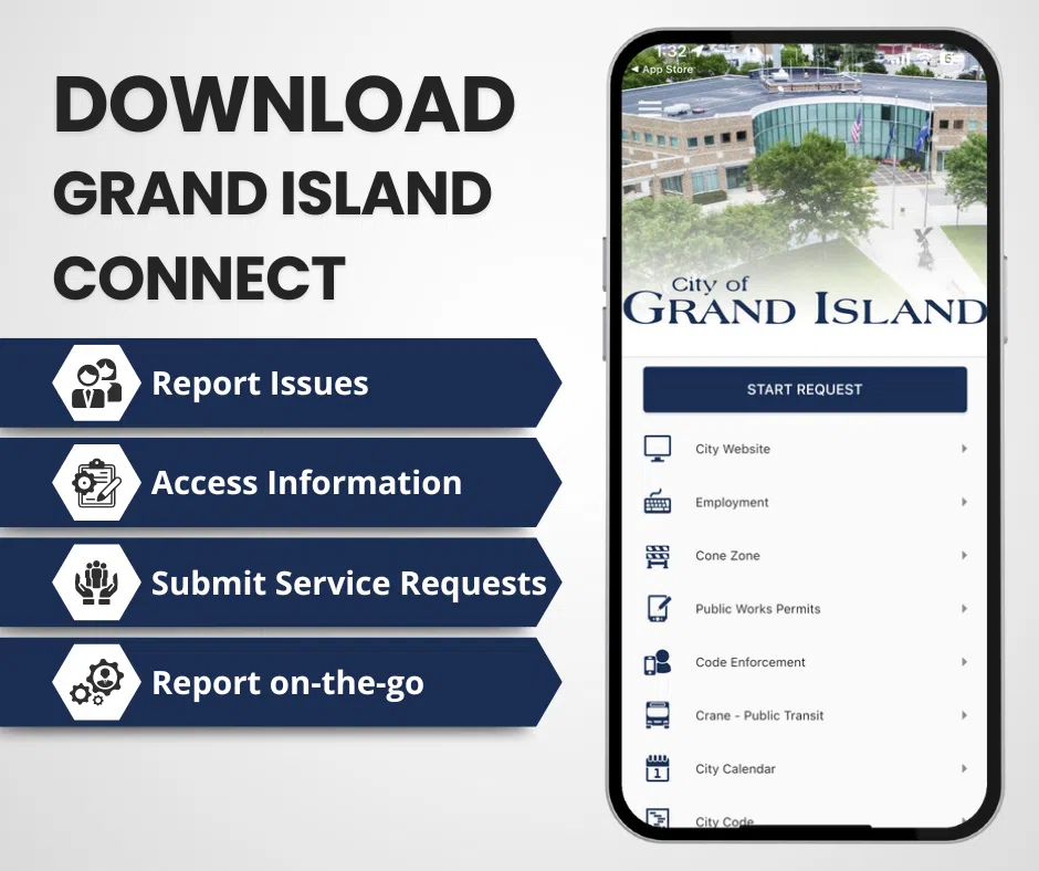 The City has modernized its government outreach with the Grand Island Connect app, putting the power of City Hall in the palm of your hand. You can download the app by searching ‘Grand Island Connect’ in the App Store and Google Play online stores. The app is designed to help simplify the service request process for city staff, allowing them to easily track the issue and communicate with citizens.