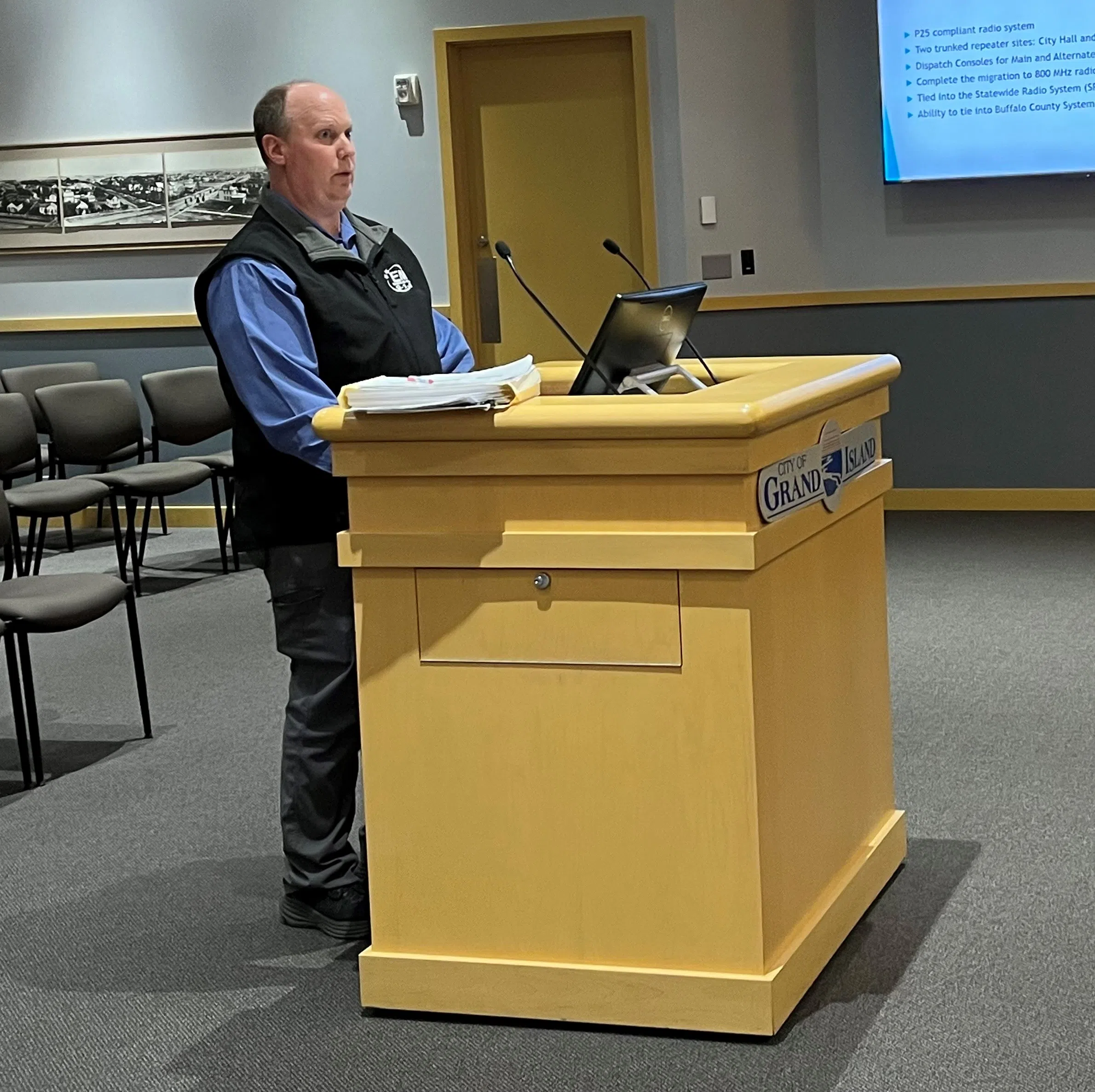 GRAND ISLAND — Hall County Emergency Management Director Jon Rosenlund gave a presentation at the March 19 City Council study session about buying a P25-compliant digital radio station that is tied to the Nebraska Statewide Radio System.
