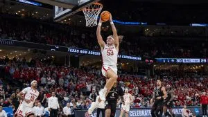 The Huskers led 31-30 with 8:40 left in the half on a dunk by Allick, but the Aggies closed the half on a decisive 28-13 run to take a 58-44 lead into the break. Manny Obaseki scored the Aggies’ last 16 points of the first half, including three 3-pointers. A&M, which ranked 343rd in the country in 3-point percentage entering the game, hit 9-of-15 (60.0 percent) in the first half.