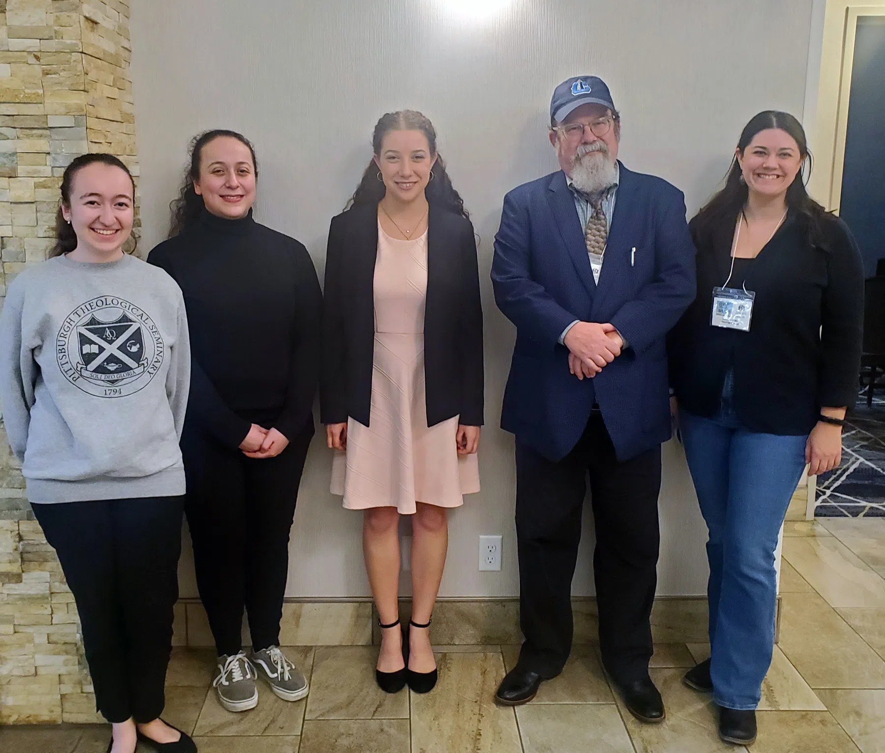 Hastings College students and faculty present their research at the 2024 Northern Great Plains History Conference in Sioux Falls, South Dakota. Shown in the photo are (from left) Emma Morelli, Elizabeth Miller, Olivia Perez '22, Dr. Rob Babcock and Dr. Catherine Biba, (Hastings College, Courtesy)