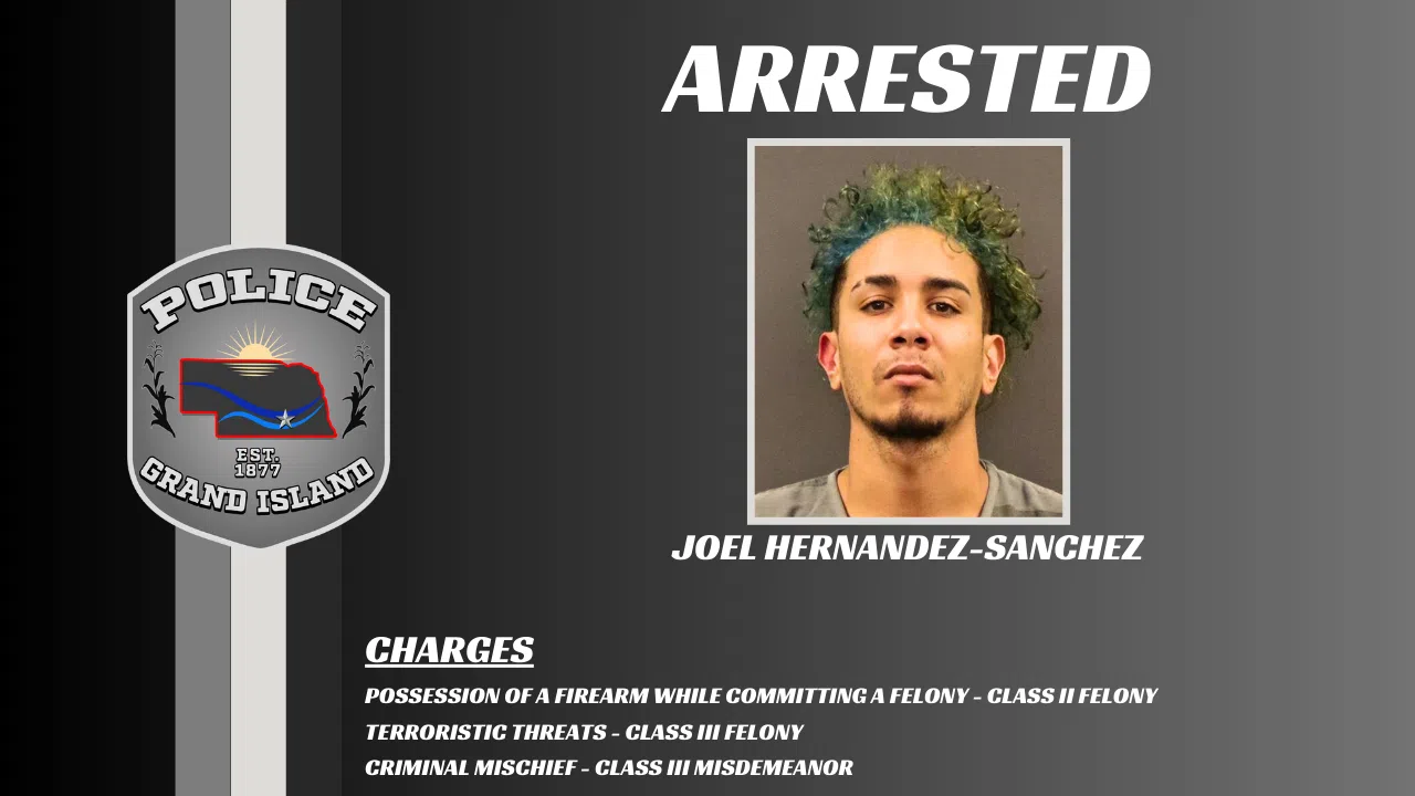 GRAND ISLAND — Grand Island Police Department Investigators arrested 21-year-old Joel Hernandez-Sanchez at his Grand Island residence on Monday, Jan. 27 at approximately 3:15 p.m.
