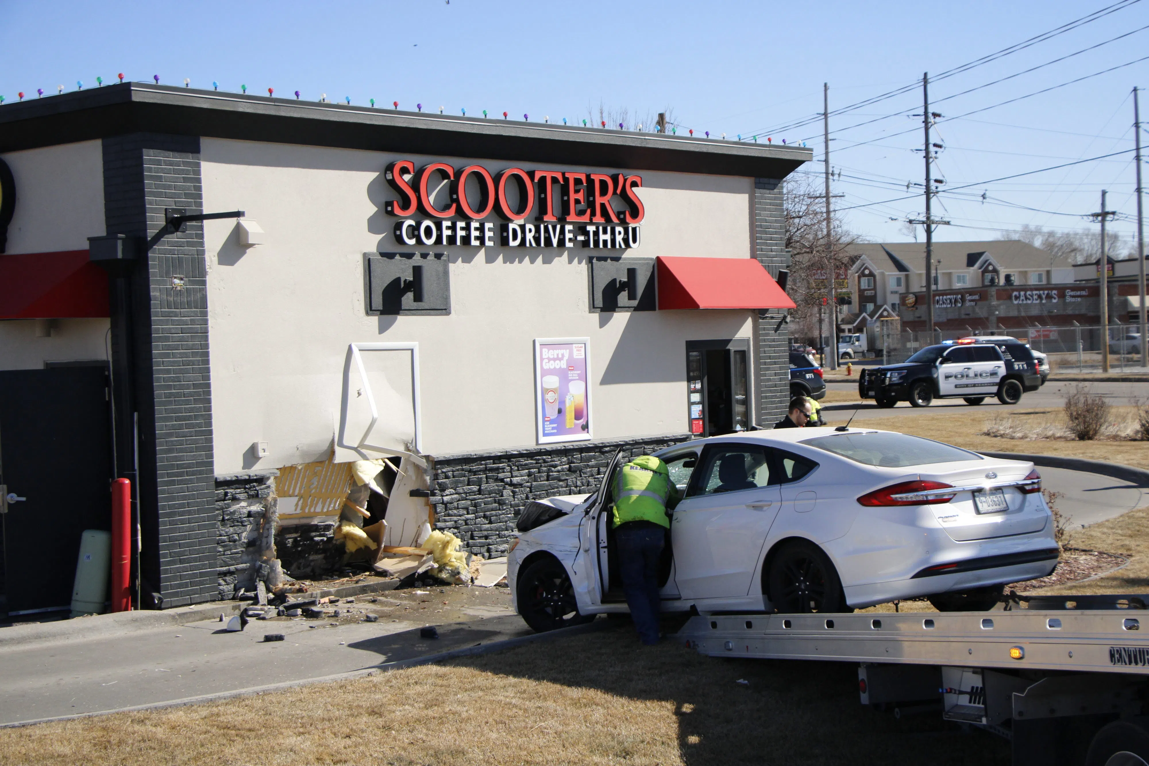 KEARNEY — A vehicle left the roadway and collided into the south Scooter’s Coffee location in Kearney during the early afternoon hours of Thursday, Feb. 6.
