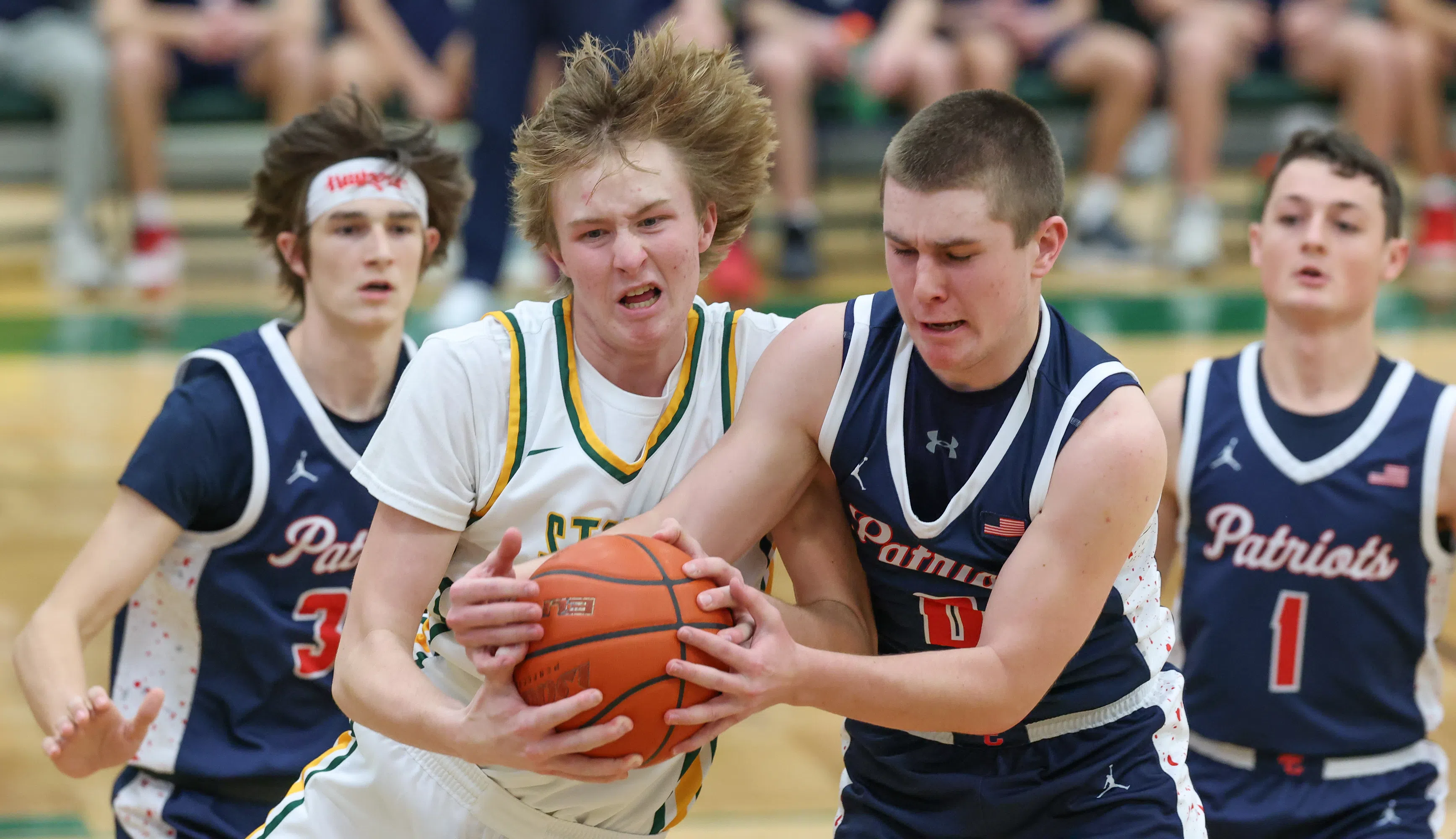 KEARNEY — The Kearney Catholic boys basketball team faced off against the Adams Central Patriots during the evening of Friday, Feb. 21.