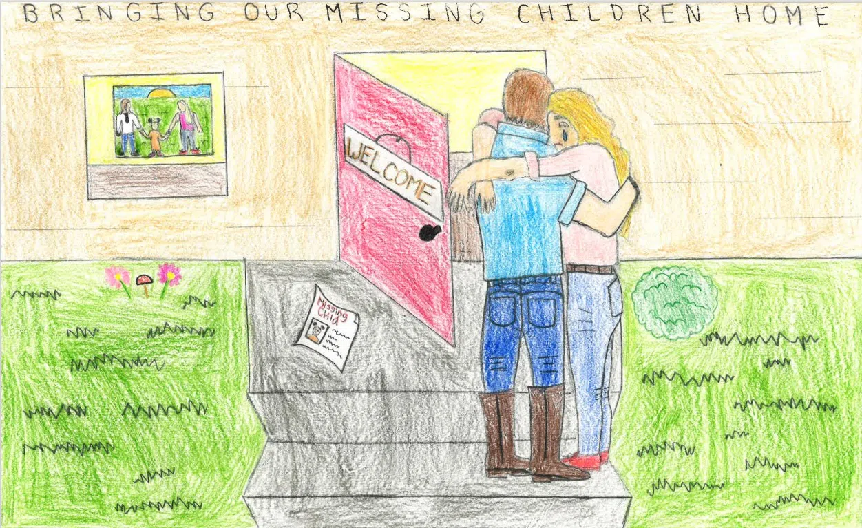 Breckstynn’s poster included a colorful drawing of two parents embracing and grieving the loss of a missing child. On her application to the contest, she stated that she wanted to make her artwork “emotional and forceful.”
