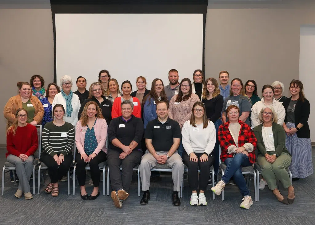 KNEW program participants gather for a group photo during a recent meeting on the UNK campus. Stakeholders from communities across the state are working with UNK, Nebraska Extension and Communities for Kids to enhance and expand the early childhood education workforce. (Photo by Erika Pritchard, UNK Communications)