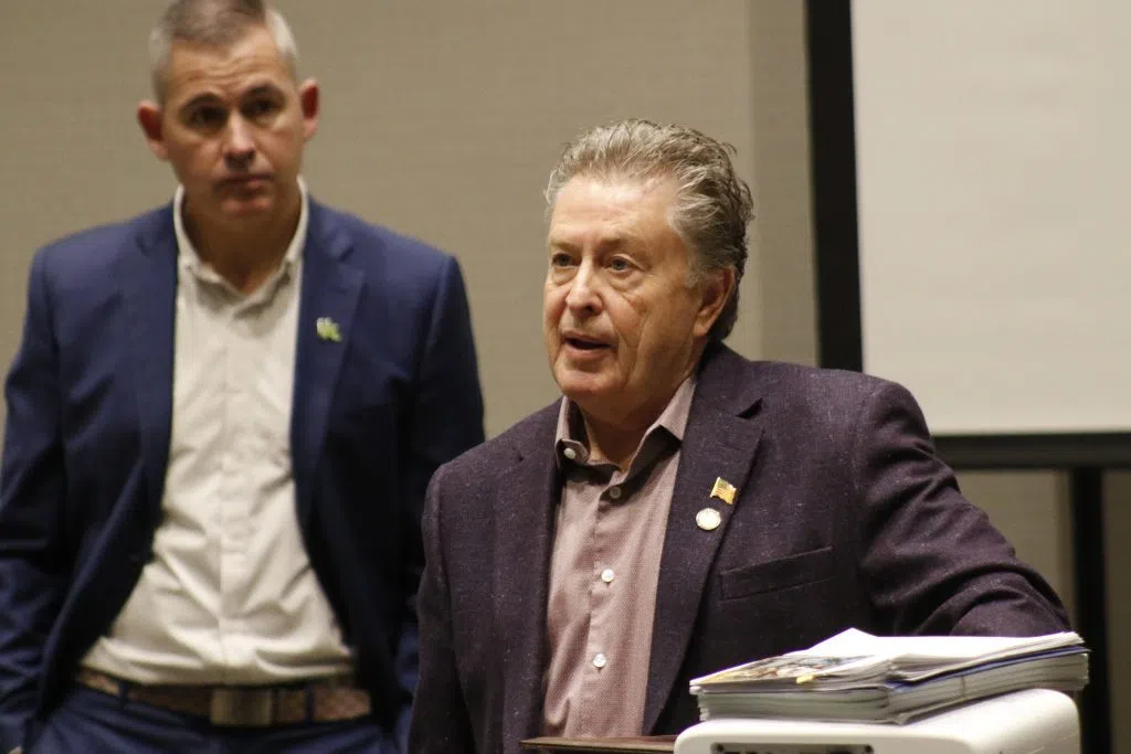 Senator Stan Clouse speaks with Kearney Area Chamber of Commerce President Derek Rusher in the background, (Brian Neben, Central Nebraska Today)