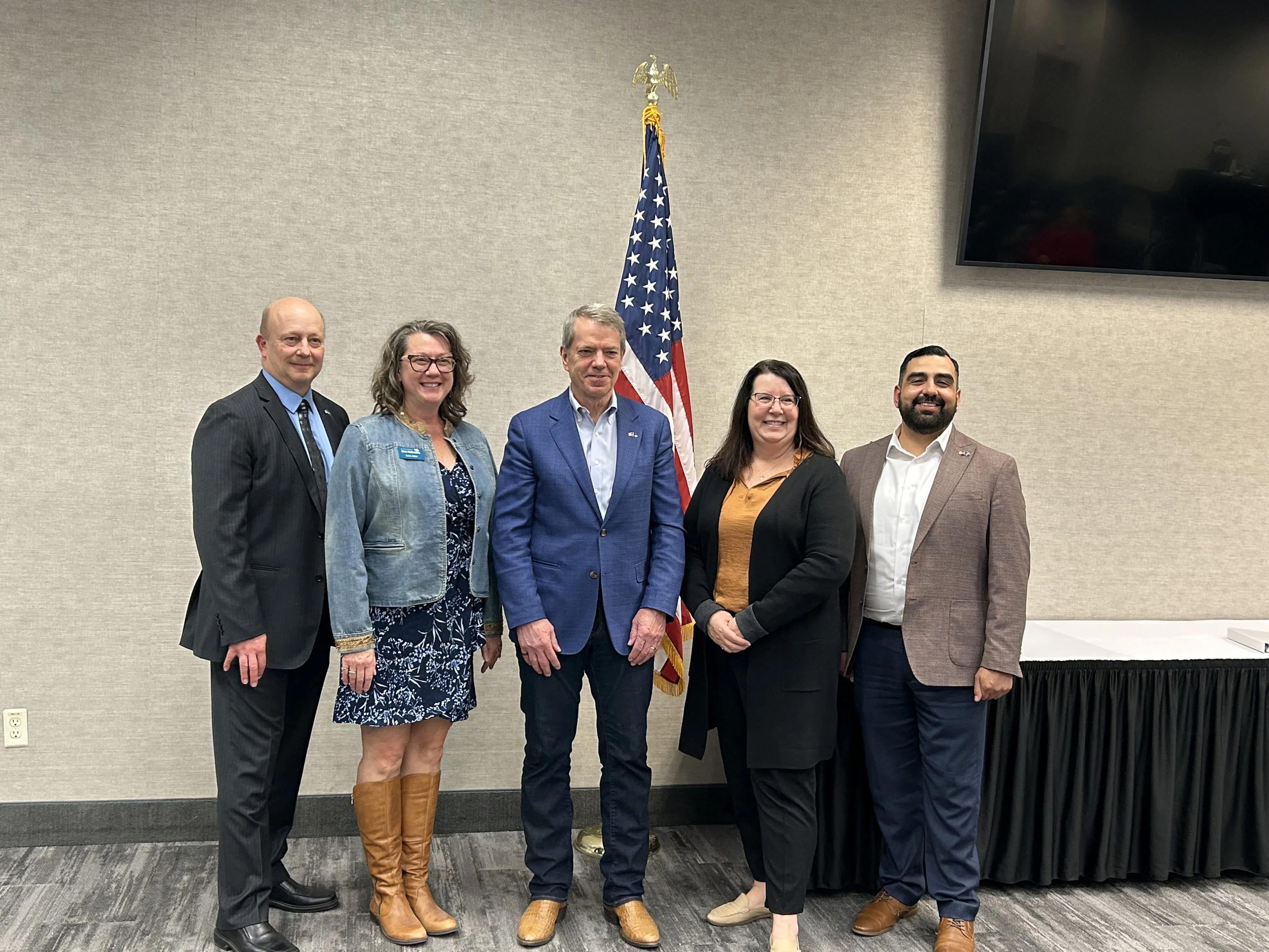 Left to right: KC Belitz, Director of the Nebraska Department of Economic Development; Dena Beck, Navigator for Central Nebraska; Governor Jim Pillen; Denise Zwiener, Chief Executive Officer for Buffalo County Community Partners; and Javier Saldana, Nebraska Department of Economic Development, (Buffalo County Community Partners, Courtesy)