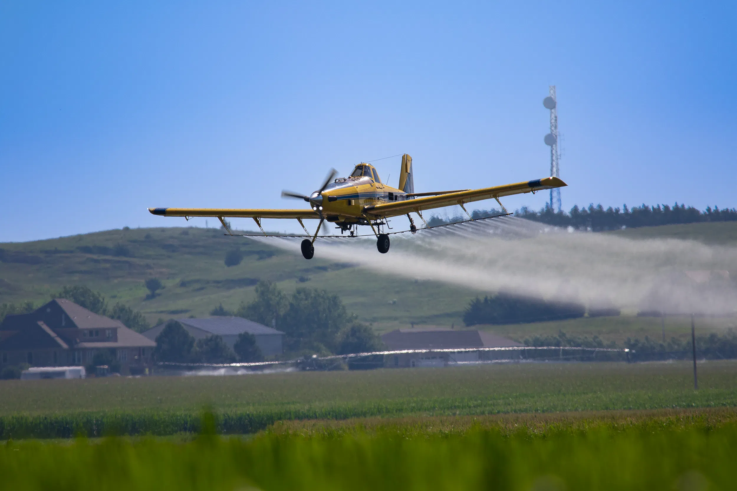 The technical term is aerial application and involves spraying crops with protective products from an agricultural aircraft, although unmanned drones are seeing more use.