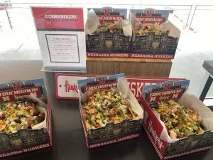 While the options have expanded for Husker games, the packaging has improved as well, and could be enticing enough for some fans to want to take home as a souvenir. The Nachos served at the Cornhuskers Crunch Nachos stand (Sections 32, 34) come in a cardboard box with cutouts printed like Memorial Stadium, and the Burgers served at Herbies Burger Co (Sections 23, 39) come in a box shaped like a Nebraska hat.