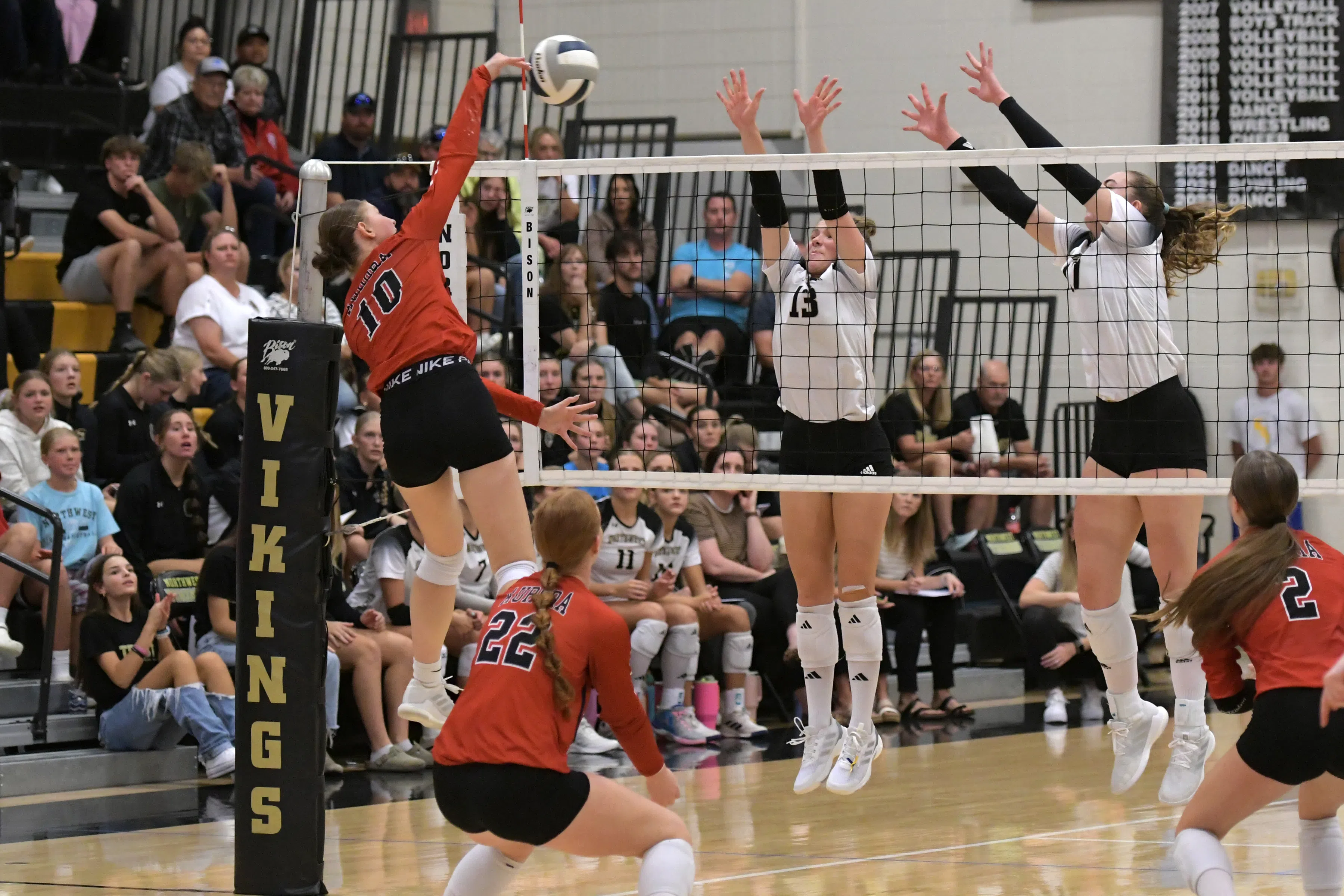 GRAND ISLAND — The Aurora volleyball team earned a four-set road victory over Class B No. 9-ranked (Omaha World-Herald) Northwest 19-25, 25-17, 25-21, 25-23 at Rosencrants Gymnasium during the evening of Tuesday, Sept. 23.