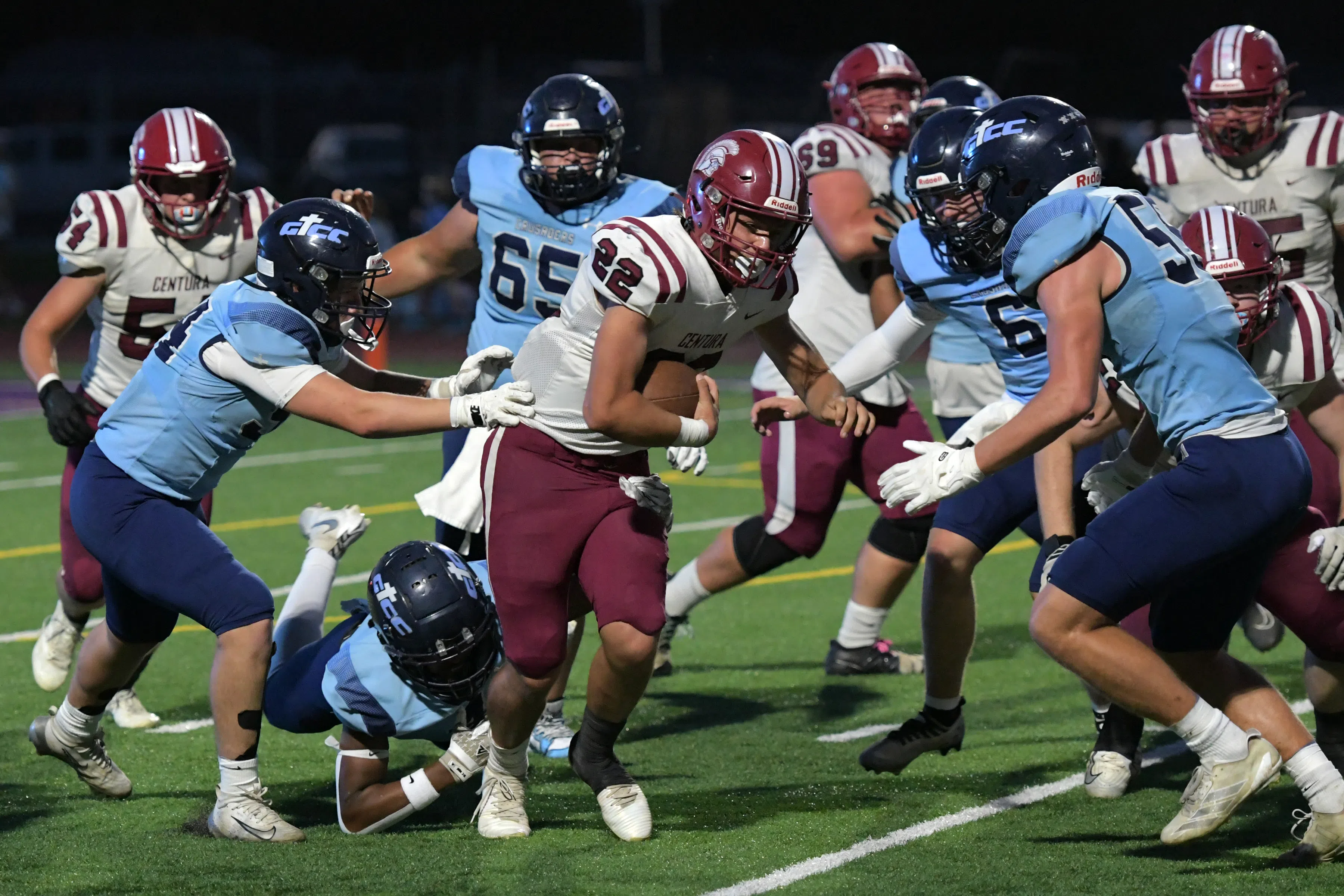 GRAND ISLAND — Grand Island Central Catholic improved to 5-0 on the season, cruising to a 42-0 victory over Centura at Memorial Stadium during the evening of Friday, Sept. 26.