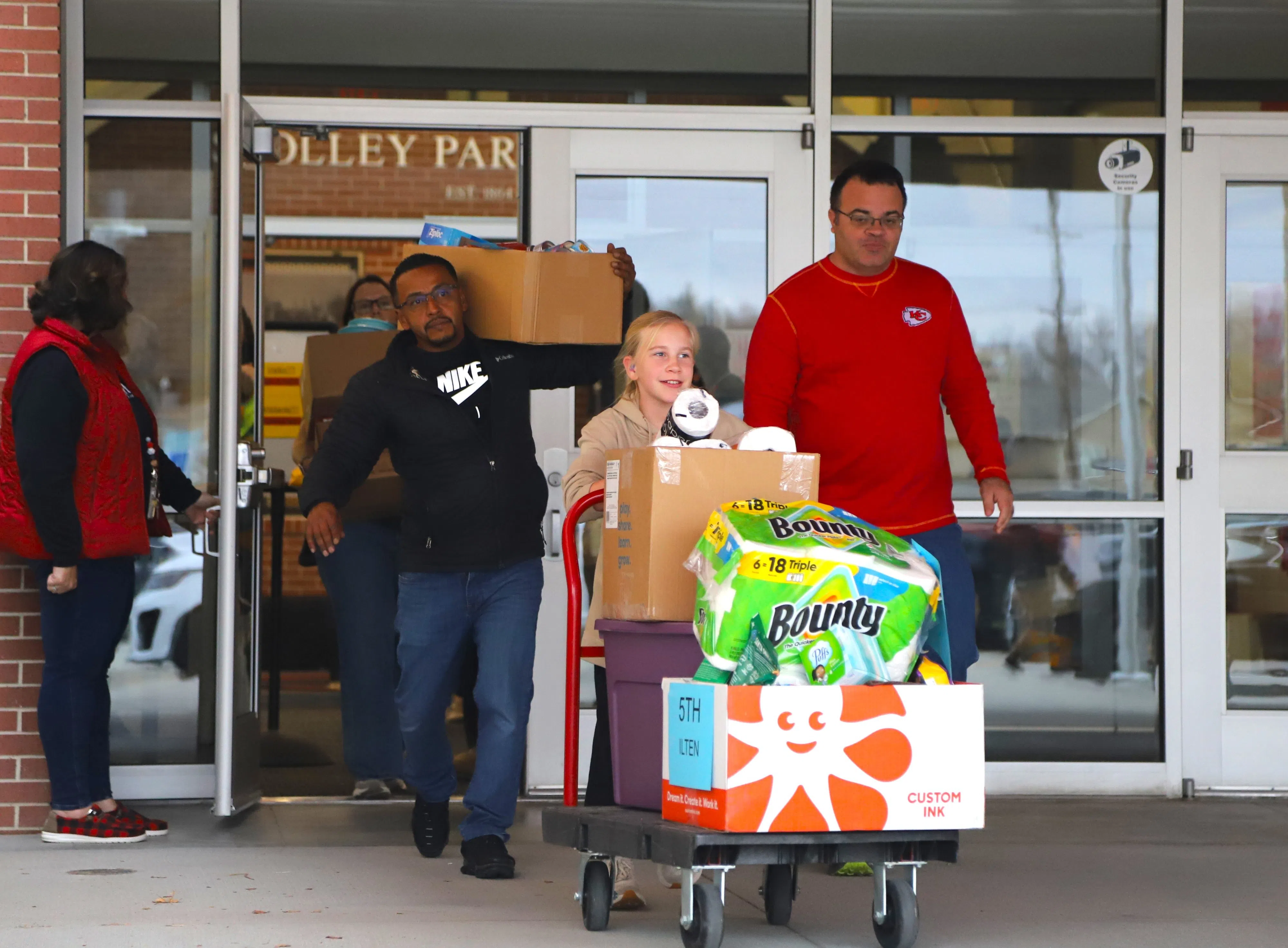 All week, the front commons of Stolley Park Elementary slowly filled-up with totes after totes packed with donated goods.