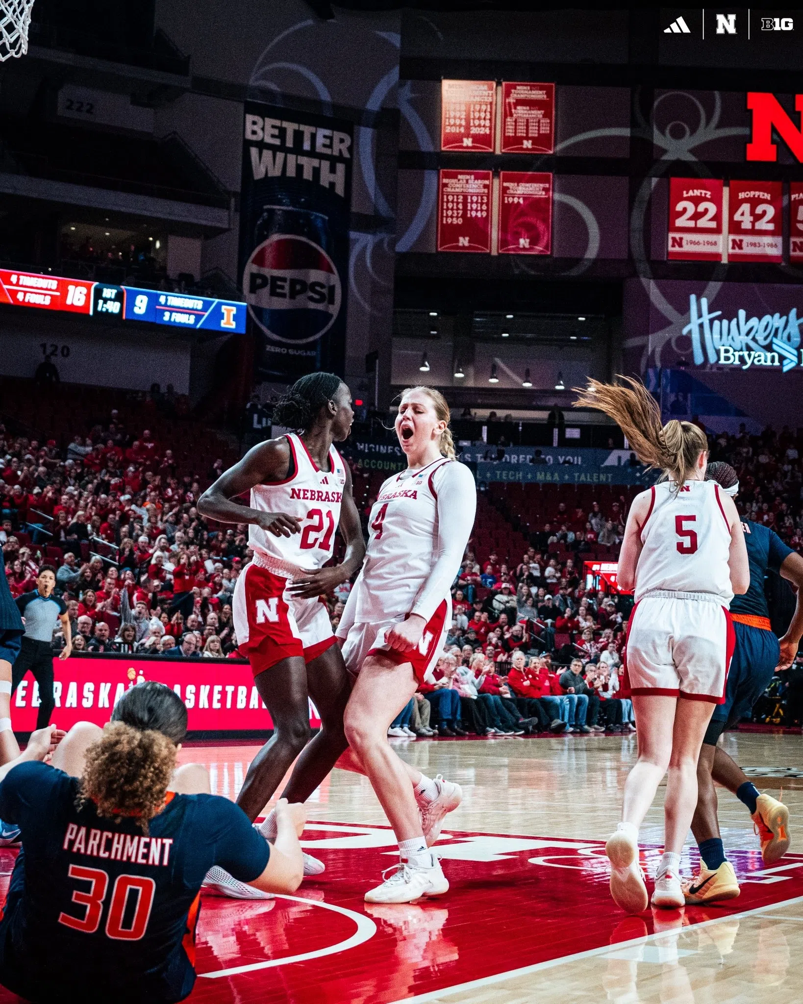 The No. 24 Nebraska women’s basketball team shook off its recent slump of five losses in the last seven games to defeat Illinois, 81-75, Saturday at Pinnacle Bank Arena. Britt Prince led the Cornhuskers (15-5, 4-5 Big Ten) with 20 points on 6-for-9 shooting plus a perfect 8-for-8 from the free-throw line. Logan Nissley and Jessica Petrie both added 15 points while Petra Bozan scored 11. Cearah Parchment led the Fighting Illini (15-5, 5-4 Big Ten) with 25 points. Berry Wallace contributed 22. Destiny Jackson scored 13 and Maddie Webber pitched in 11. Parchment had a double-double in the loss, also grabbing 11 rebounds.