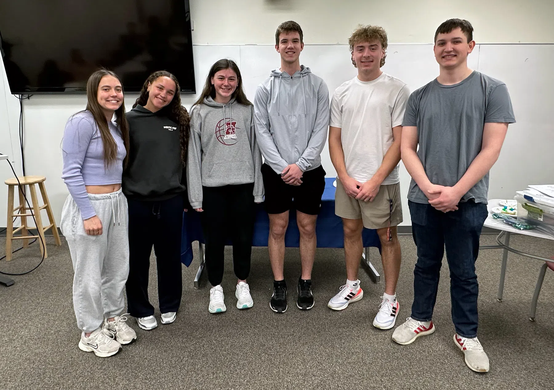 Newly inducted Hastings College Alpha Chi members include (from left) Nora Stewart, Payton Tanner, Ady Mlnarik, John Backhaus, Jackson Howard and Bryson Hornbacher. Not pictured: Cara Ansbach and Hadlee Hasselmann. (Courtesy photo)