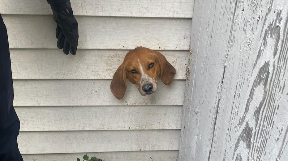 Spike, an otherwise happy hound from South Carolina, found himself in a tight spot after the dog became stuck in his owner's dryer vent. The Sumter Police Department said that Spike was "sniffing out ...