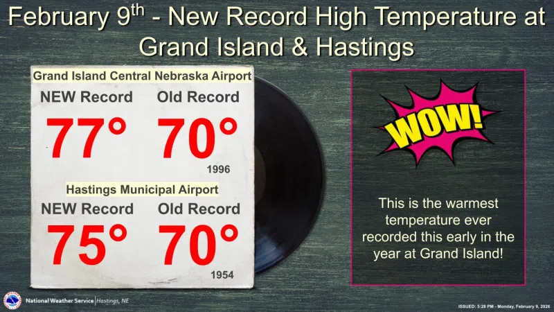 Grand Island sees warmest temperature ever recorded this early in the year on Monday